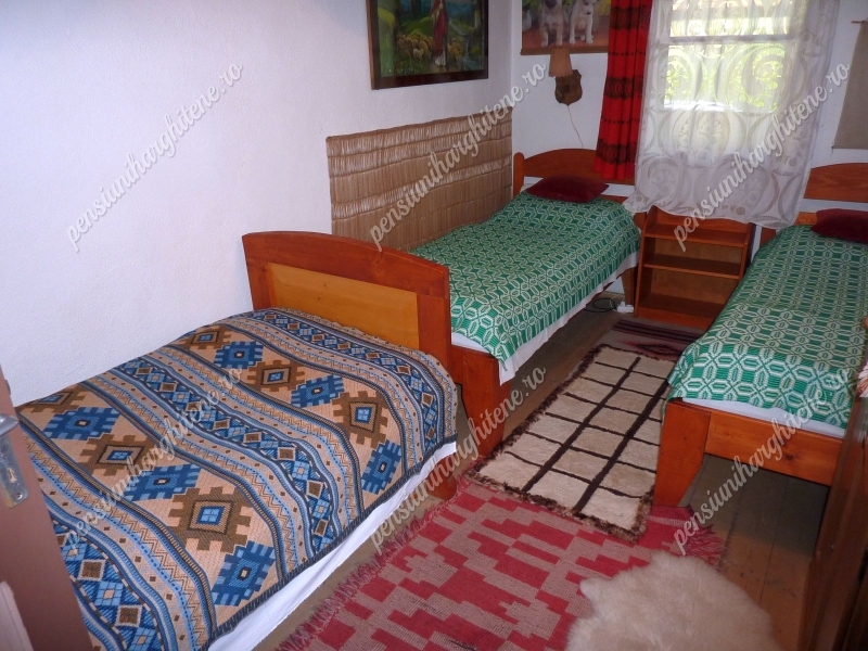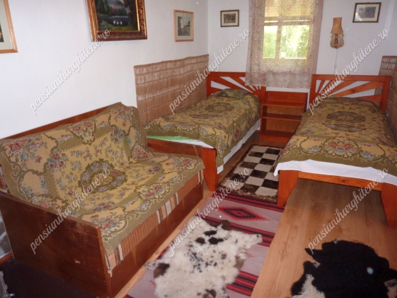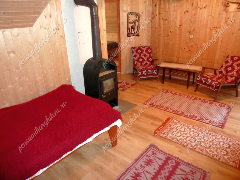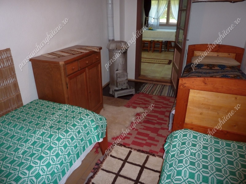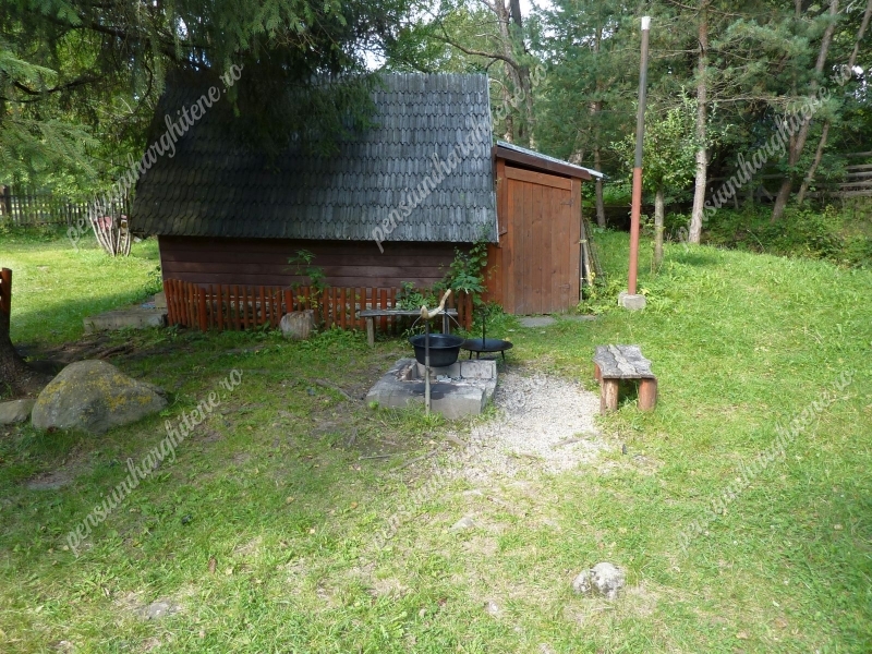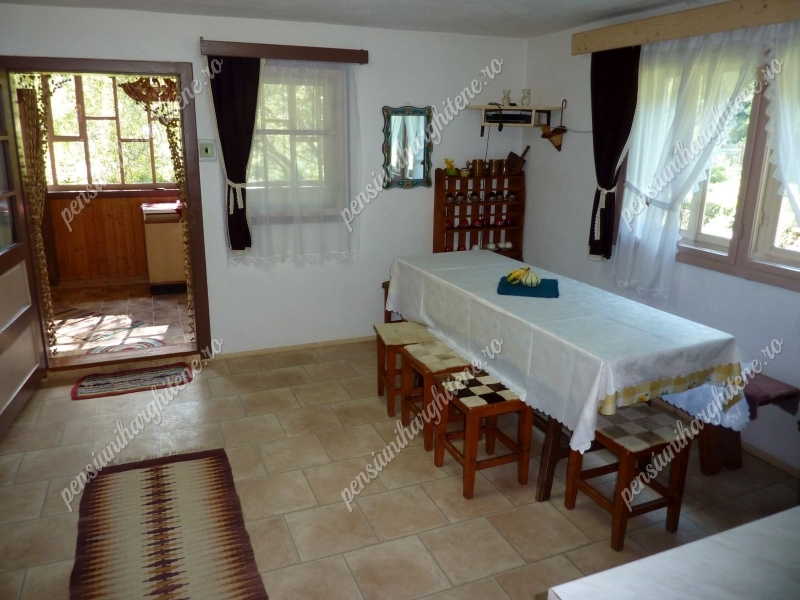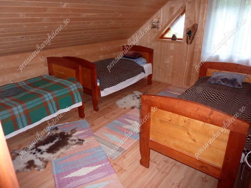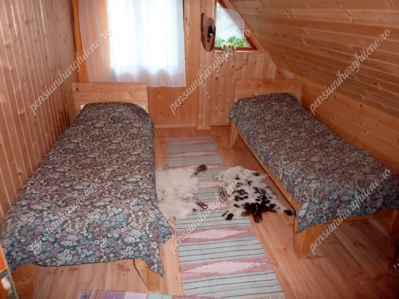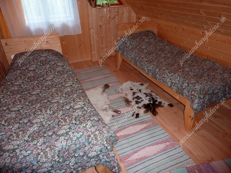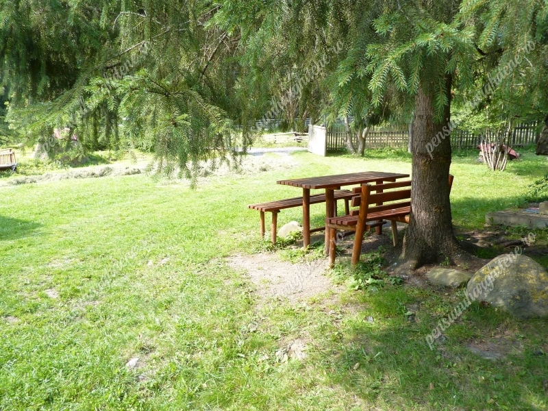 Az alsó szinten foglal helyet a nappali, az ebédlõ, a konyha, fürdõszoba és két szoba. Az egyik szobában három egyszemélyes ágy van. A következő szobában két egyszemélyes ágy található. Megjegyzés: Az emeletre a külső részt is érintő lépcsőn keresztül lehet feljutni. Ezen a szinten egy nappali, két szoba és egy mellékhelyiség található. Az egyik szobában két egyszemélyes ágy, míg a másik szobában három egyszemélyes ágy kapott helyet. Nagyobb csoportok esetén az emeleten lévõ nappaliban lehetõség van egy fõ elszállásolására. (Összesen 10 + (1) fõ)