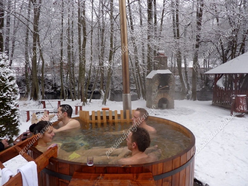 Bármely évszakban használható, fűthetõ vizes dézsa áll kedves Vendégeink rendelkezésére. A 2 méter átmérõjű, 120 centiméter mély, 3500 liter vízzel feltöltött "Székely Jakuzzi" 6-8 fõ kikapcsolódását biztosítja. Mivel a dézsa üzembe állítása (vízleeresztés, kimosás, fertõtlenítés, feltöltés és felfûtés) az adott évszaknak megfelelõen 12-15. órát vesz igénybe, ezért ha igénybe szeretnék venni, kérnék szépen legalább két nappal az ideérkezésük elõtt szíveskedjenek jelezni ezen szándékukat.