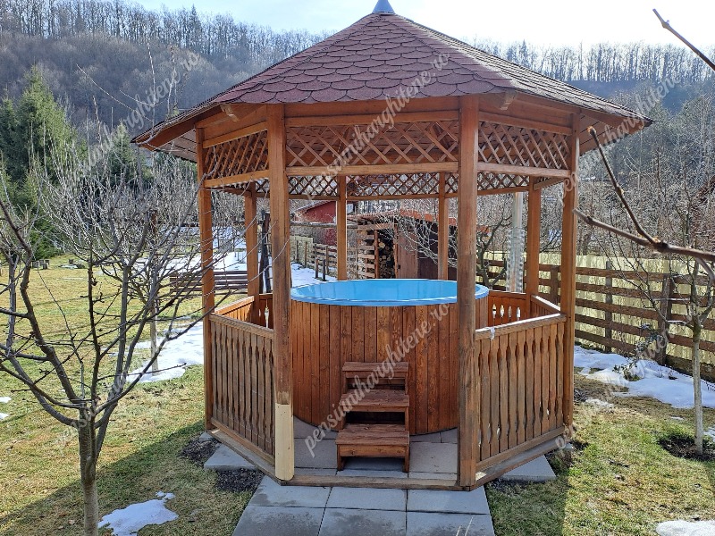 Székely jakuzzi, vagy vizesdézsa: Bármely évszakban használható, fűthetõ vizes dézsa áll kedves Vendégeink rendelkezésére. A 2 méter átmérõjű, 120 centiméter mély, 3500 liter vízzel feltöltött "Székely Jakuzzi" 6-8 fõ kikapcsolódását biztosítja. Mivel a dézsa üzembe állítása (vízleeresztés, kimosás, fertõtlenítés, feltöltés és felfûtés) az adott évszaknak megfelelõen 12-15. órát vesz igénybe, ezért ha igénybe szeretnék venni, kérnék szépen legalább két nappal az ideérkezésük elõtt szíveskedjenek jelezni ezen szándékukat.