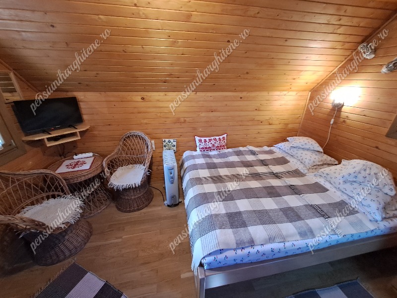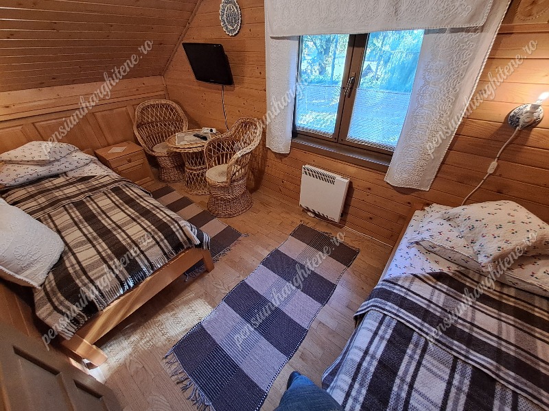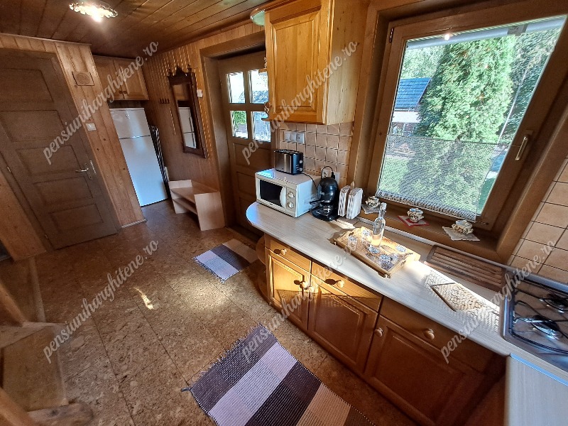 A főépülettől mindössze 20 méterre két téliesített kisház található, mindegyik kétszemélyes ággyal és saját fürdőszobával. A fűtés itt is termosztátos villanyradiátorral és infrapanellel megoldott, így a hidegebb időszakban is komfortos szállást biztosítanak.