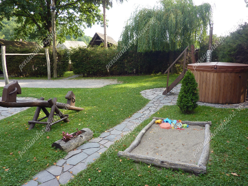 A gondozott udvar számos kikapcsolódási lehetőséget kínál: ingyenes parkolás, hinta, libikóka, csúszda, pingpongasztal, lábtenisz pálya, homokozó, filagória, grillező és tűzrakóhely, valamint meleg vizes fürdődézsa és szauna.