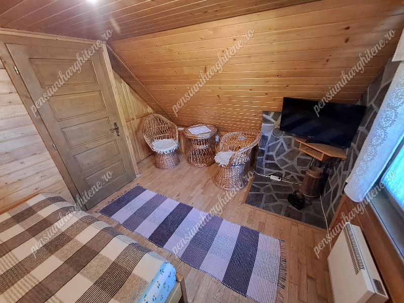 A kellemes melegről kandalló típusú cserépkályha, termosztátos villanyradiátorok és infrapanelek gondoskodnak. A főépület alapkapacitása 4 fő, pótágyakkal +3 fő.
