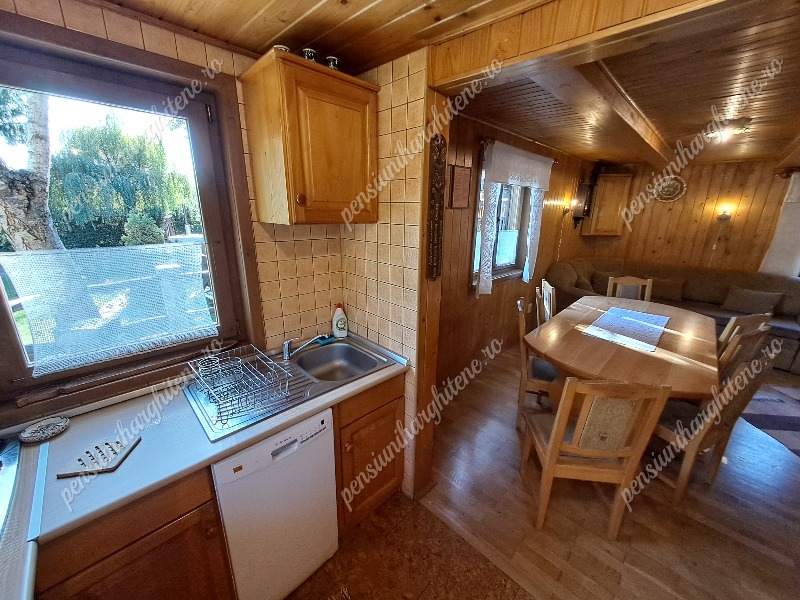 A főépület földszintjén található a nappali–ebédlő Smart TV-vel és WiFi-vel, a teljesen felszerelt konyha, valamint WC és zuhanyzó. A nappaliban elhelyezett kihúzható körkanapé további 2 fő részére biztosít alvóhelyet.