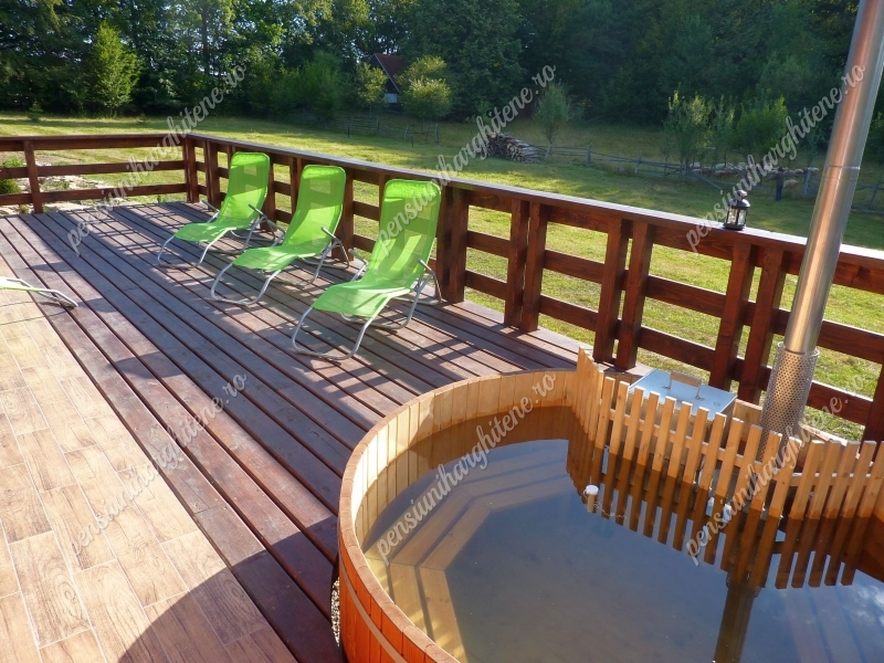 Székely jakuzzi, vagy vizesdézsa: Bármely évszakban használható, fűthetõ vizes dézsa áll kedves Vendégeink rendelkezésére. A 2 méter átmérõjű, 120 centiméter mély, 3500 liter vízzel feltöltött "Székely Jakuzzi" 6-8 fõ kikapcsolódását biztosítja. Mivel a dézsa üzembe állítása (vízleeresztés, kimosás, fertõtlenítés, feltöltés és felfûtés) az adott évszaknak megfelelõen 12-15. órát vesz igénybe, ezért ha igénybe szeretnék venni, kérnék szépen legalább két nappal az ideérkezésük elõtt szíveskedjenek jelezni ezen szándékukat.