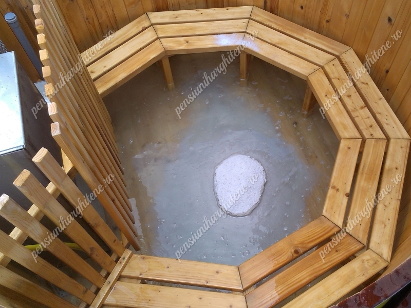 Székely jakuzzi, vagy vizesdézsa: Bármely évszakban használható, fűthetõ vizes dézsa áll kedves Vendégeink rendelkezésére. A 2 méter átmérõjű, 120 centiméter mély, 3500 liter vízzel feltöltött "Székely Jakuzzi" 6-8 fõ kikapcsolódását biztosítja. Mivel a dézsa üzembe állítása (vízleeresztés, kimosás, fertõtlenítés, feltöltés és felfûtés) az adott évszaknak megfelelõen 12-15. órát vesz igénybe, ezért ha igénybe szeretnék venni, kérnék szépen legalább két nappal az ideérkezésük elõtt szíveskedjenek jelezni ezen szándékukat.