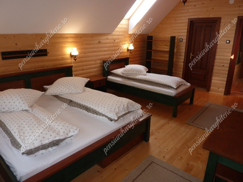 · egy szoba franciaággyal, egy egyszemélyes ággyal és pótággyal.
