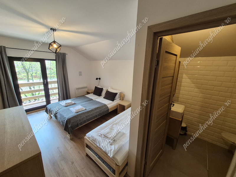 Az emeleten két kényelmes szoba kapott helyet. Mindkét szobában egy franciaágy és két egyszemélyes pótágy áll rendelkezésre, továbbá mindkét szobához saját fürdőszoba tartozik.