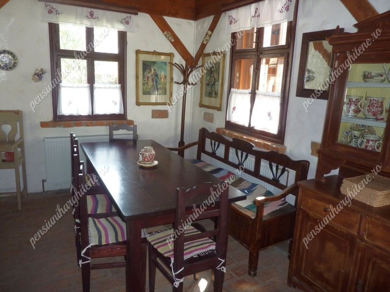 A hangulatos, hagyományos székely bútorokkal berendezett helyiség kellemes helyszíne a székely ízek, valamint a házi készítésű italok kóstolgatásának.