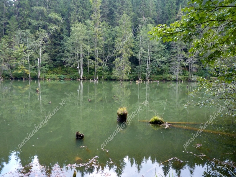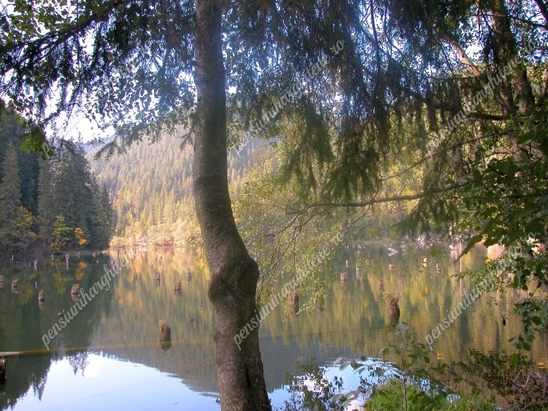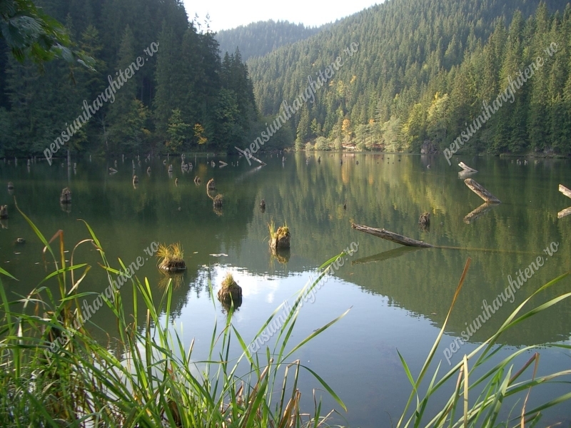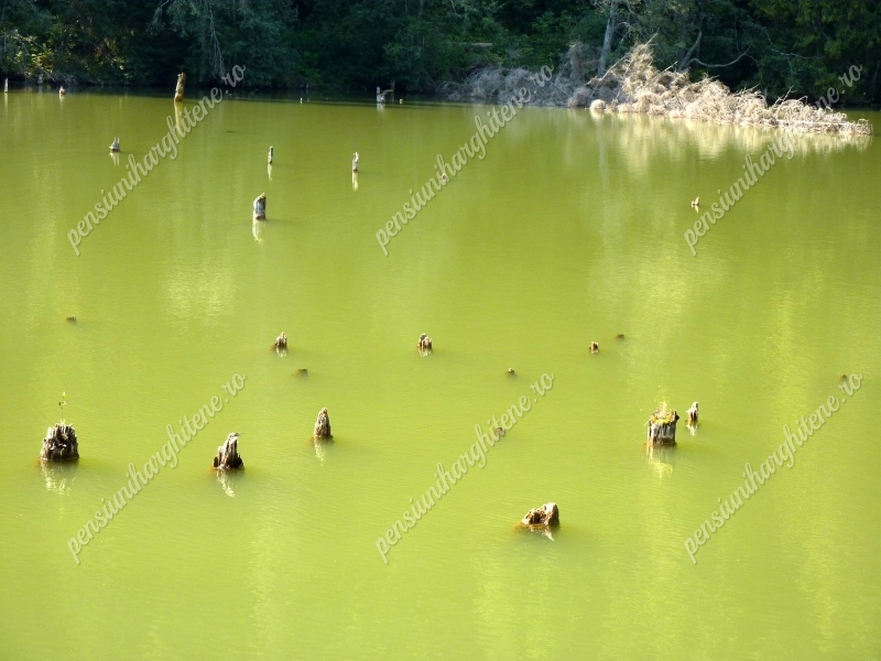 A vízből kiálló, megkövesedett fatörzsek különleges, misztikus hangulatot teremtenek.