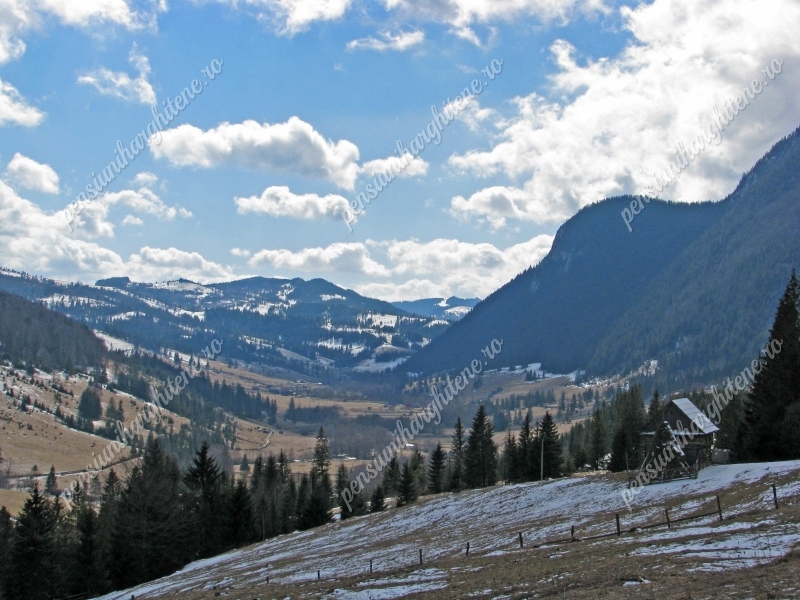 Ezután hangulatos erdei ösvényen ereszkedünk le a délkeleti kilátóhoz, ahonnan a Kis-Békás völgyének szétszórt tanyavilága és a patak látványa nyűgöz le.