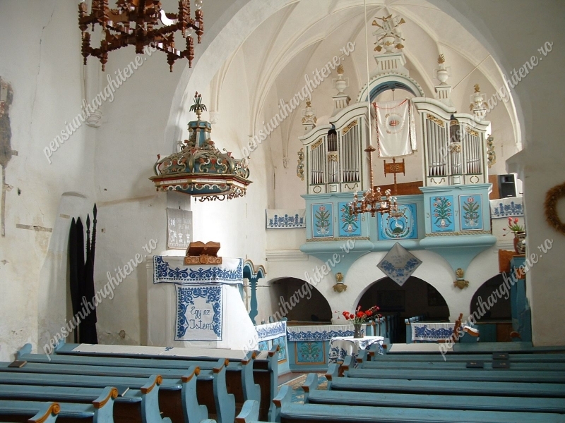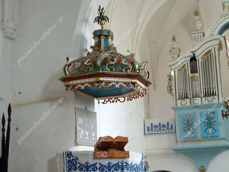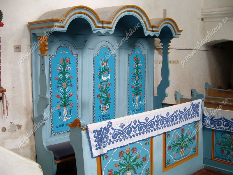 faragott szószék és festett úrasztala