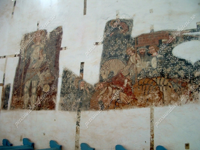 A freskók és részletek a középkori hitvilágot és művészetet elevenítik meg.