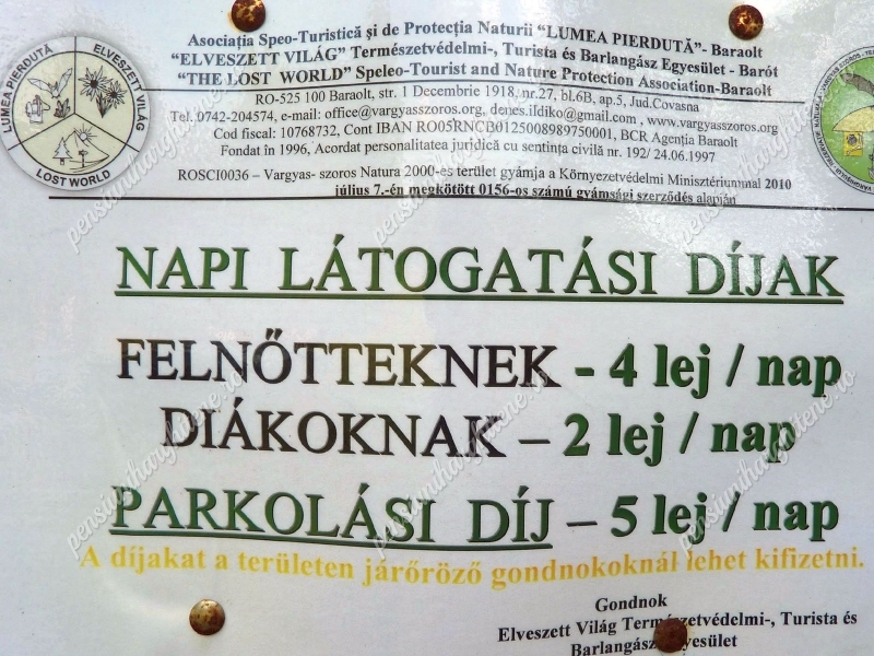 belépő: 4 lej/fő (diákoknak kedvezmény)