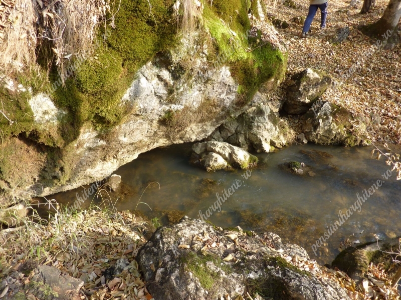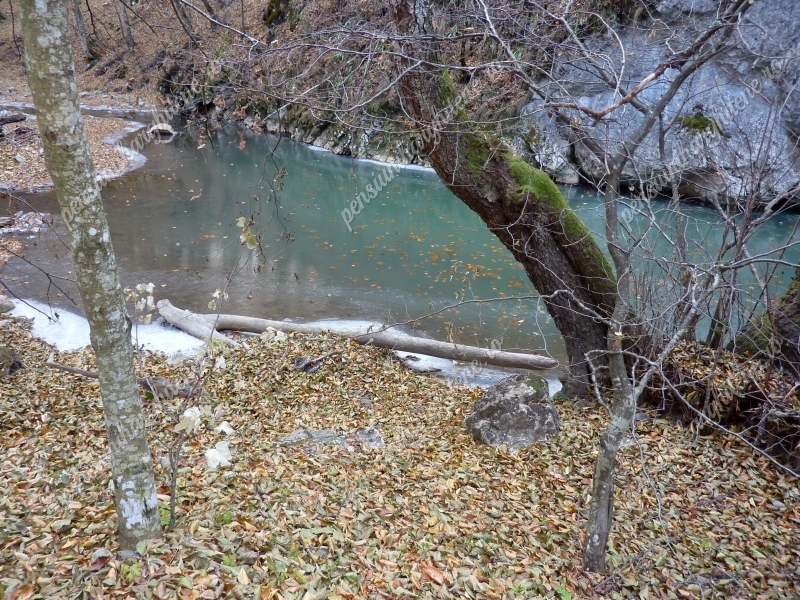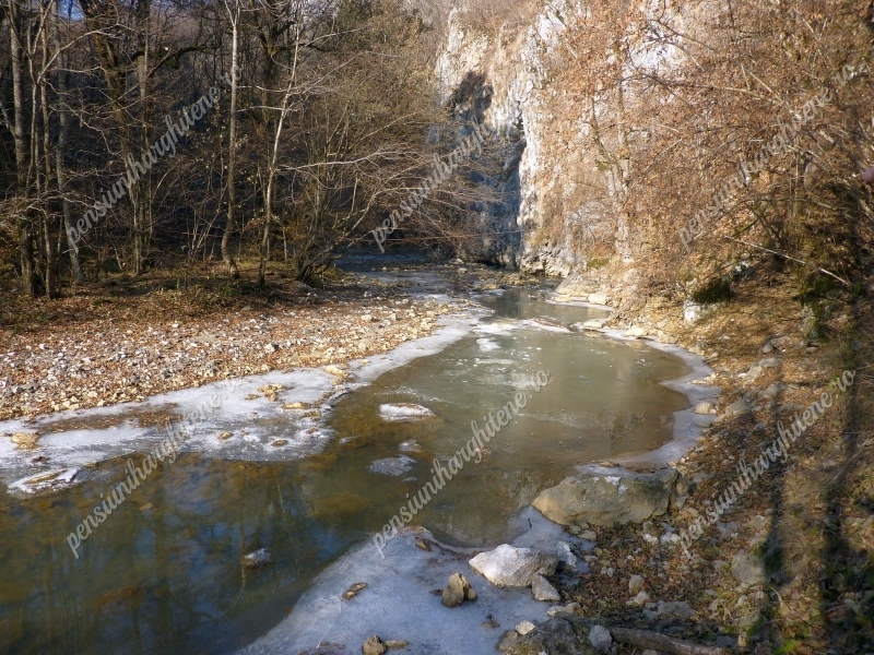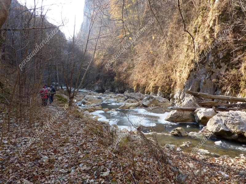 A szoros felső részén nincs kiépített átkelő a patakon.