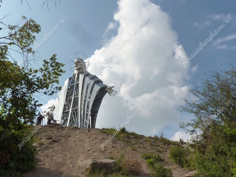 Rendeltetése szerint kilátó, lelki értelemben pedig egy hely, ahová, ha feltekint a látogató, elmondhat egy Jézus köszöntést. A kilátó 121 négyzetméter alapú, 1,2 méter magas piramis alakú talapzaton áll, magassága 22,5 méter. A váz anyaga horgonyzott acél, a palást, a fej és a kezek anyaga rozsdamentes acél.