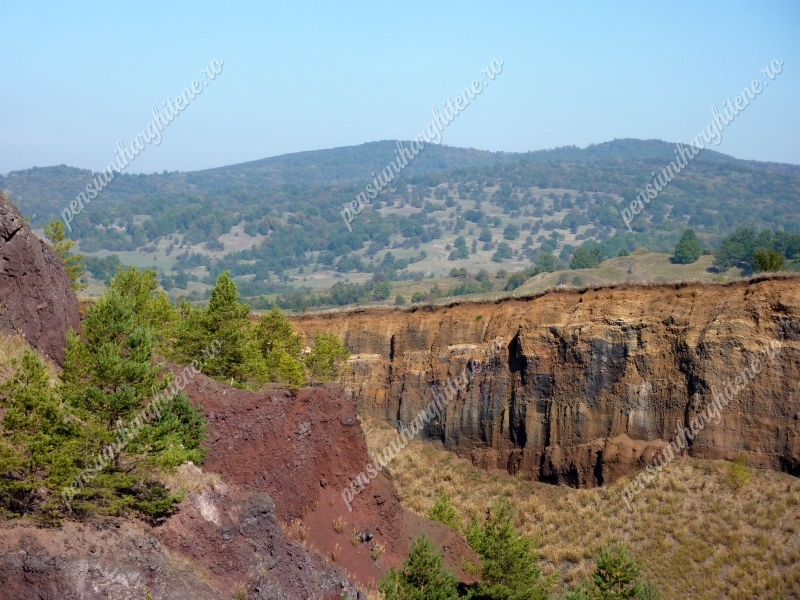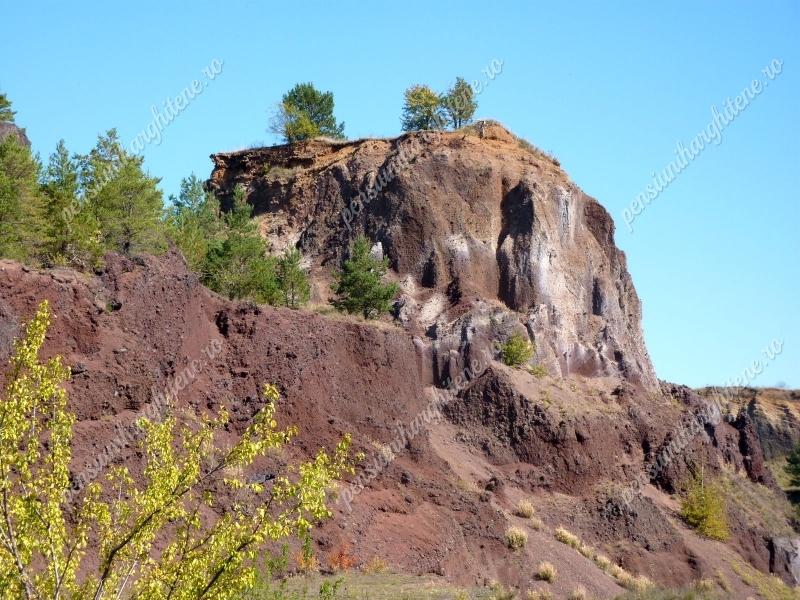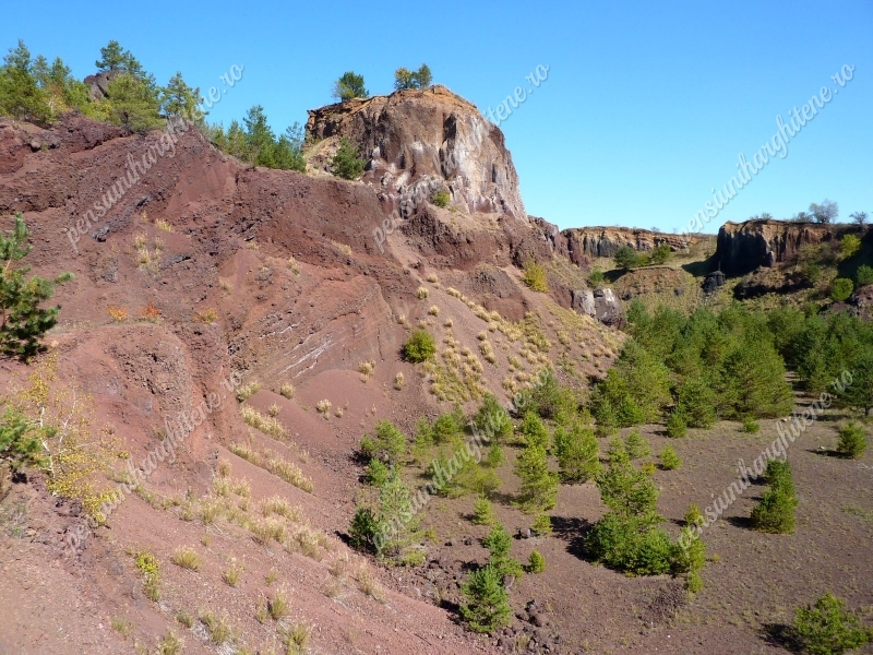 Rövid séta után érjük el a Hegyes (612 m) vörös színű salakkúpját, amelyet gyakran a „pokol kapujának” neveznek.