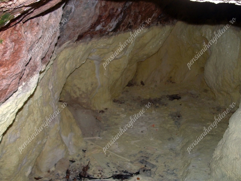 A közeledéskor már érezhető a kénes gáz szaga. A barlang belsejében: